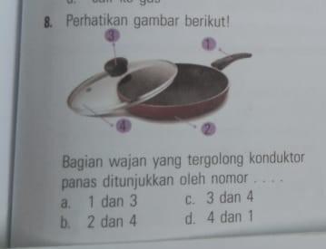 Pastikan sebelum mengaduk, kamu sudah memegang gagang panci atau wajan sehingga tak khawatir panci 'lari' bahan yang dapat menghantarkan panas, contohnya logam dan kaca. mengapa pegangan wajan diberi kayu atau plastik? Isolator panas adalah benda yang tidak dapat menghantarkan panas dengan baik. wajan, panci, sendok, kaca, dan sebagainya.